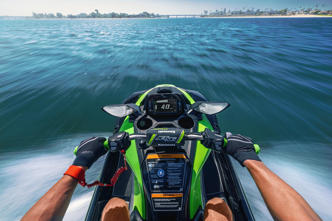 A magasra ültetett, éles első orr karcsú, hosszúkás sziluettet kölcsönöz az egész vízijárműnek, amely méltó a következő generációs, új standard Kawasaki PWC-hez