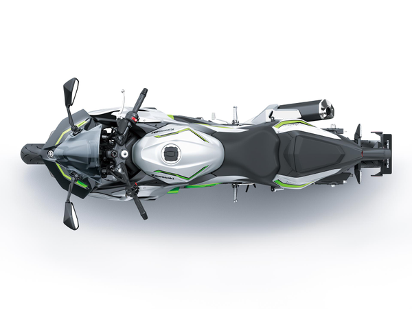 Ezüst és Lime Green színben, félmatte felülettel a Ninja 7 Hybrid szín- és grafikai kialakítása friss, futurisztikus megjelenést kölcsönöz a Kawasaki HEV modelljeinek.