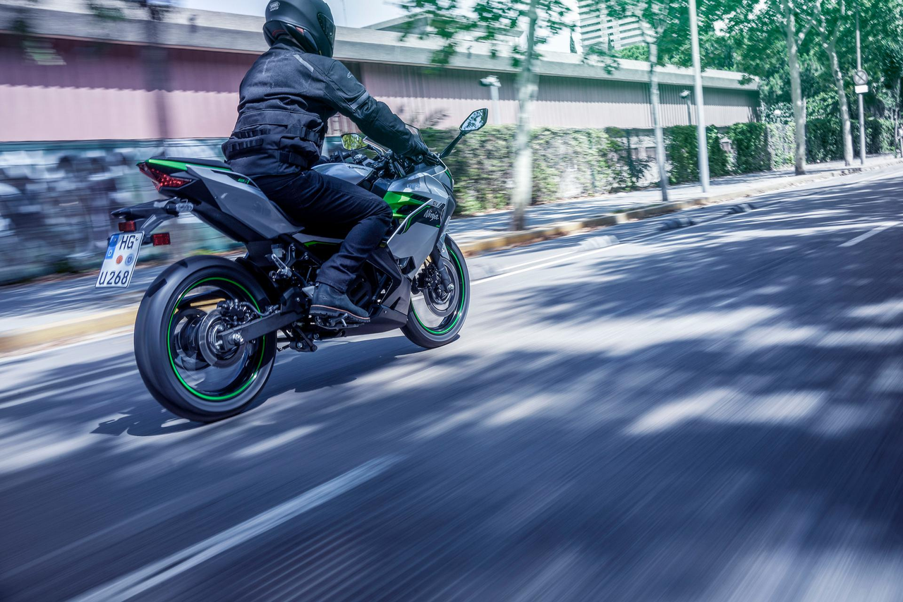 Elektromos motor hajtásának köszönhetően a Ninja és a Z e-1 működés közben nem bocsát ki károsanyagokat.