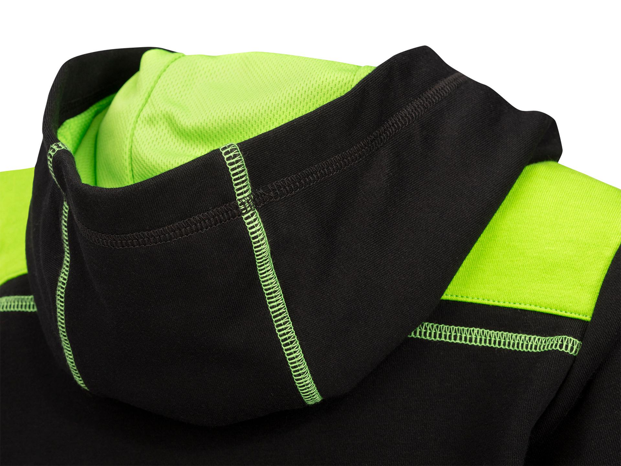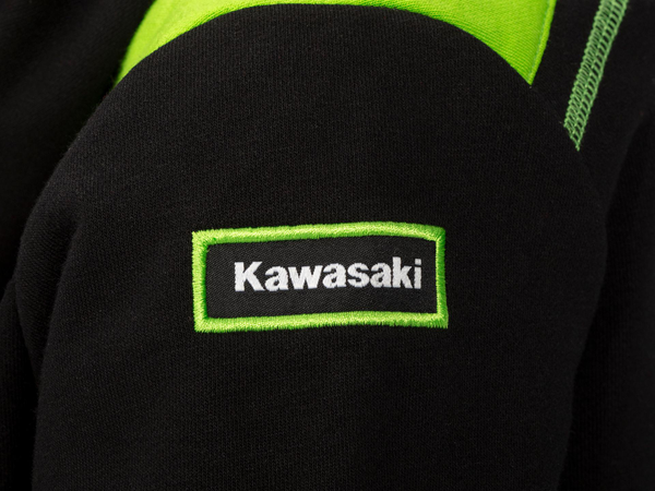 Gyerek kapucnis pulóver kenguruzsebbel Zöld vállbetétek Hímzett felvarró a jobb felső ujjrészen Elülső és hátsó logók hímzettek Bordázott alsó szegély és ujjak Bolyhozás nélküli terry anyag Anyagösszetétel: 81,6% pamut, 18,4% poliészter