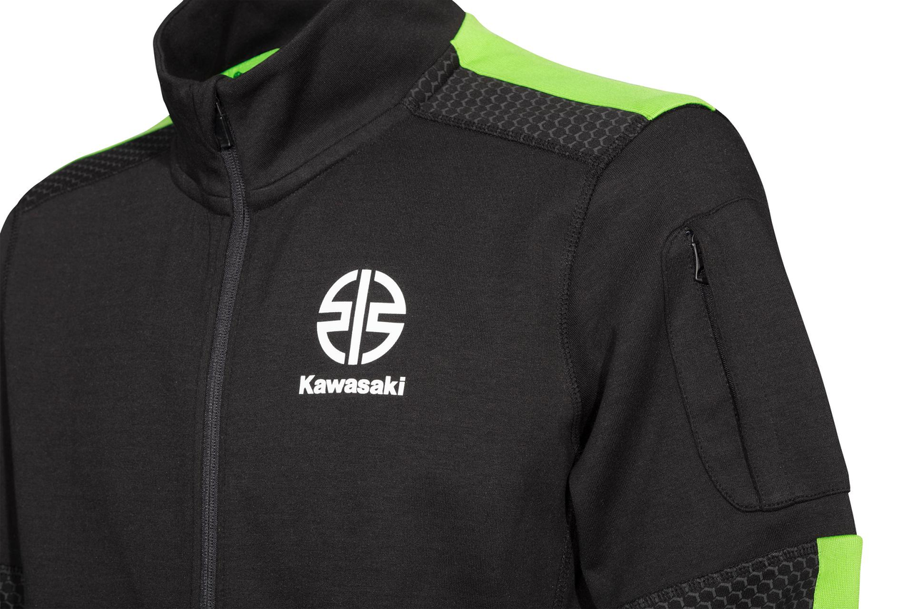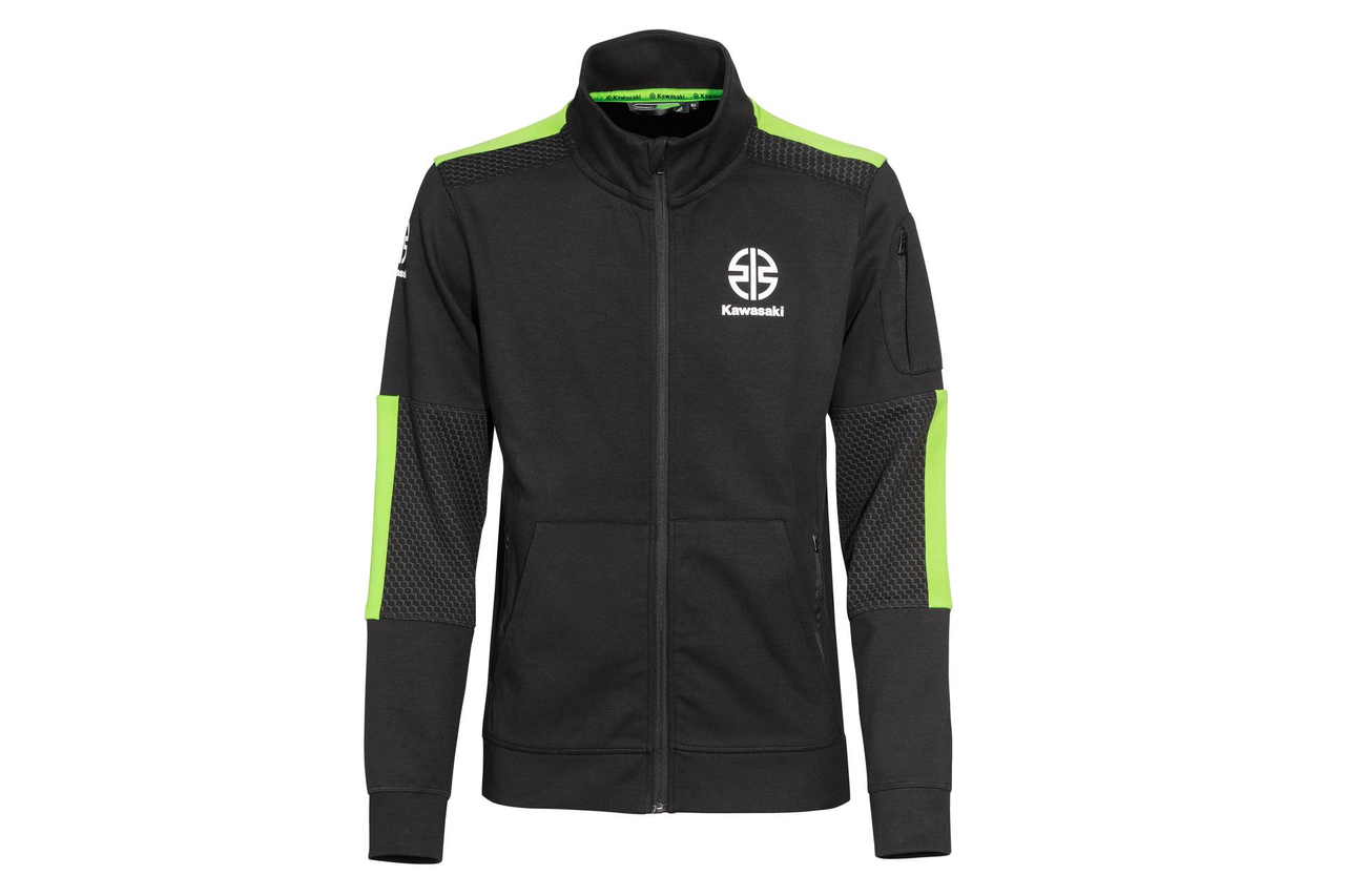 Cipzáras pulóver kenguru- és cipzáras oldalzsebekkel, álló gallérral, bordázott szegéllyel és mandzsettákkal.