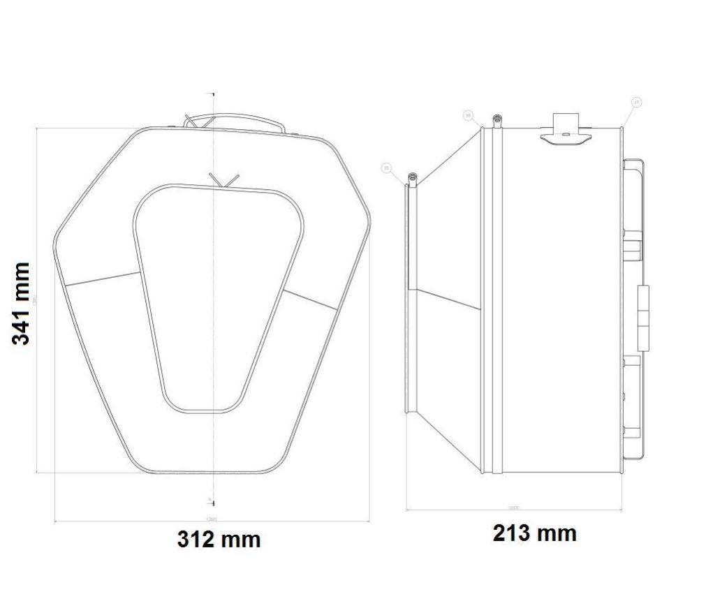 - Méretek: H312 mm, Sz213 mm, M341 mm (egy oldal)