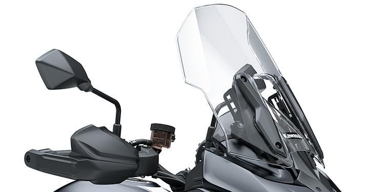 Karcálló, átlátszó szélvédő, amelyet a motoros kényelmének növelésére terveztek. Ez a szélvédő körülbelül 90 mm-rel magasabb és 140 mm-rel szélesebb a gyári változatnál. Kawasaki márkájú termék, a Kawasaki fejlesztésében és gyártásában készült, teljes mértékben közúti használatra alkalmas.
